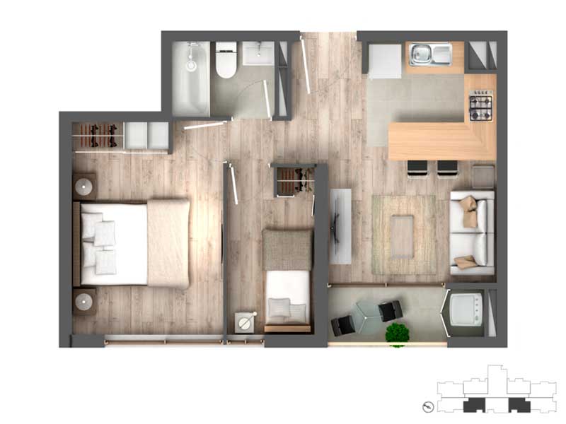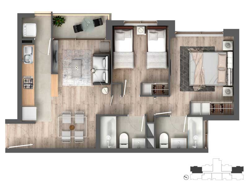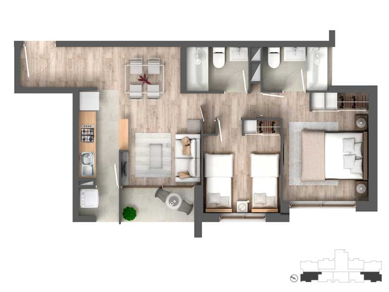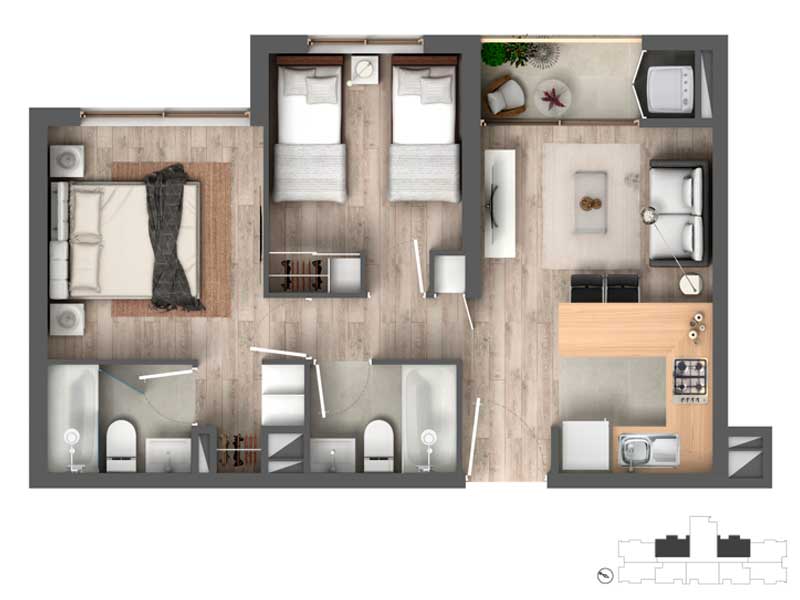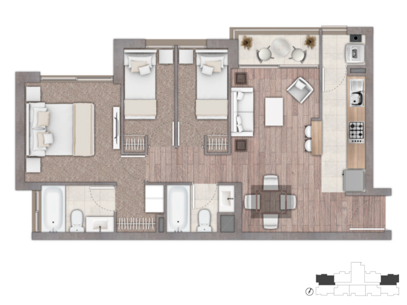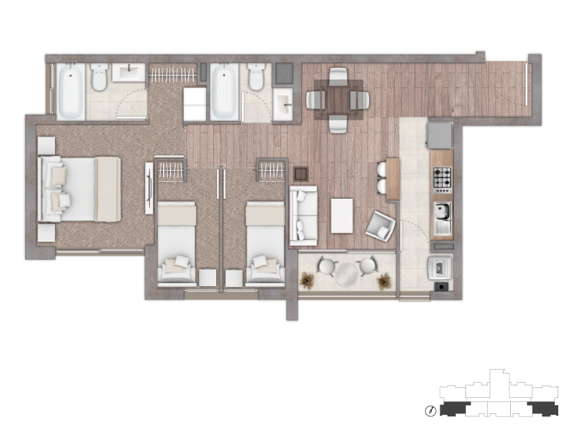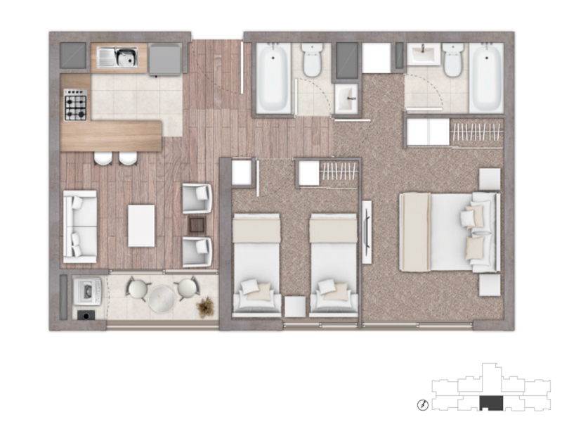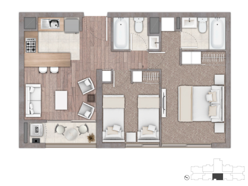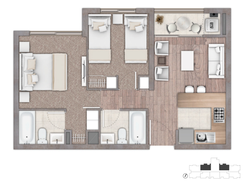 2 dormitorios | 2 baños