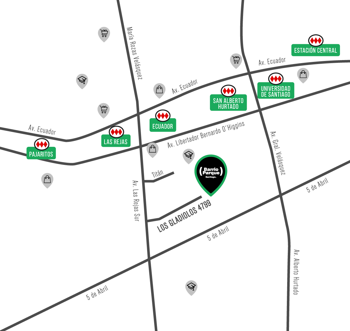 Gran desarrollo comercial, en cercanías encontramos los Malls Plaza Alameda y Arauco Estación.